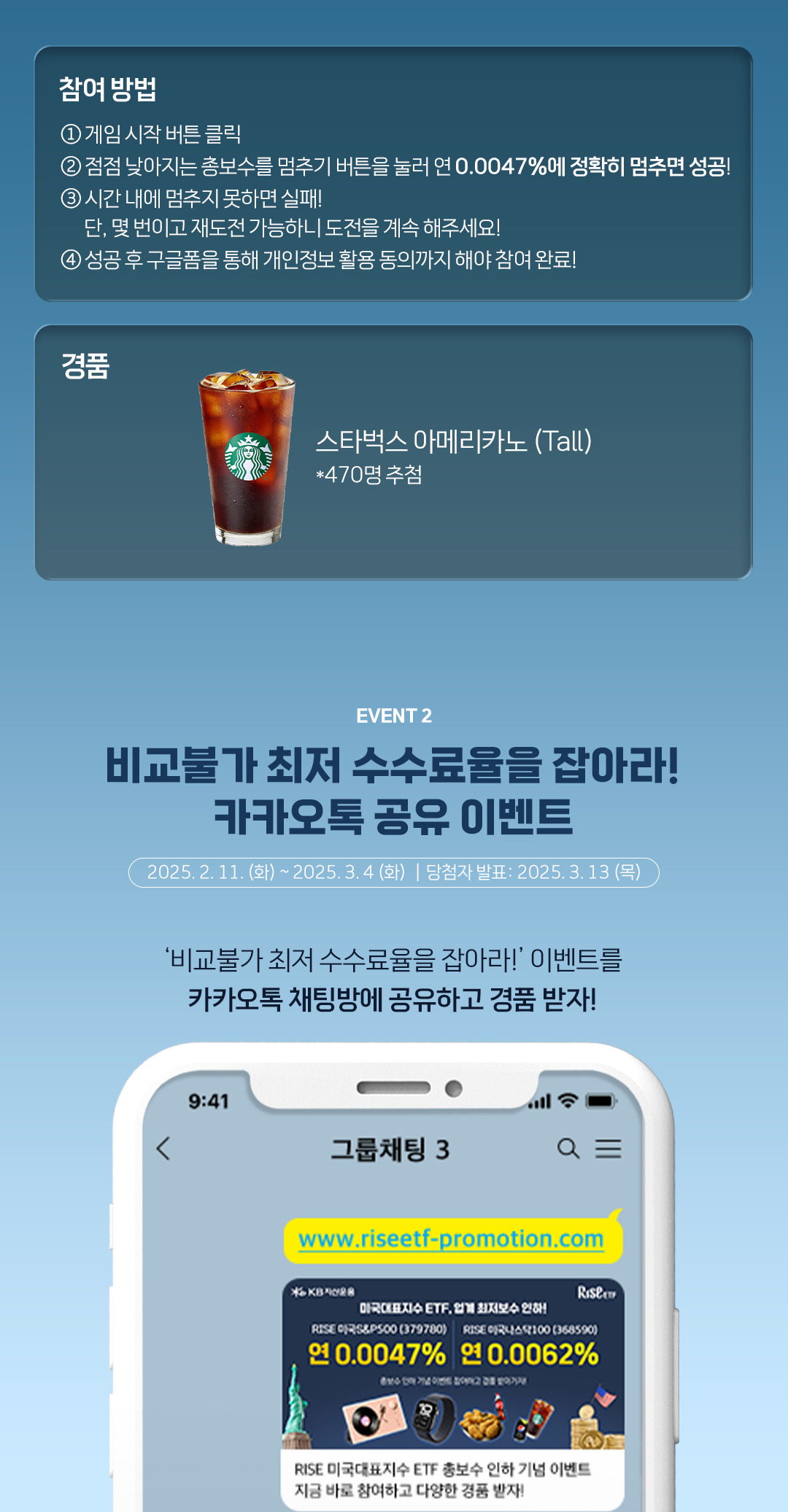 RISE 미국대표지수 ETF 총보수 인하 기념 이벤트